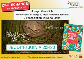 Cette projection sera suivie d'un débat en présence de la vice présidente Languedoc Roussillon, Pascale Hoeckman, de Marie-Hélène Pillot pour les Territoires d'expérimentation et de Joseph Guardiola, vice président en charge du Projet Alimentaire Territorial.