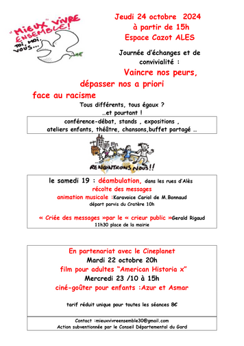 conférence-débat, stands , expositions , ateliers enfants, théâtre, chansons,buffet partagé …