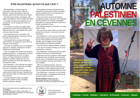 Dans le cadre du festival "Automne palestinien" organisé par l'AFPS du 13 au 29 novembre
